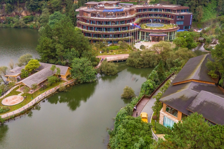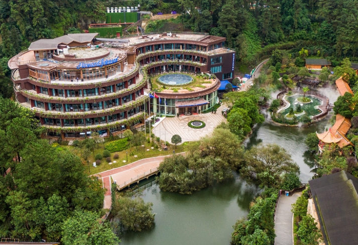 船石湖豪生温泉酒店是川南首家五星级豪生温泉酒店,酒店地处穹窿地貌核心区域,船石湖畔,周边分布着穹窿地貌的山水精华,置身酒店,山环水抱、佳气葱茏开门见山、推窗观水,恍如仙境,游客可以近距离体验城市里触碰不到的诗意,酒店还配置有大型游乐空间,内设海洋池、滑滑梯、攀登等多种游乐项目。