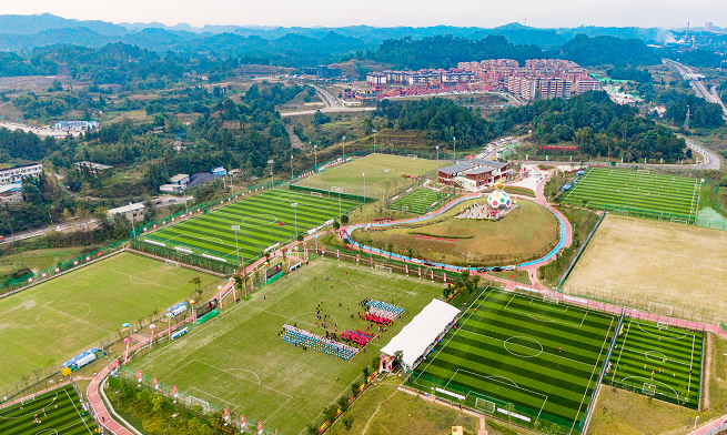 在船石湖风景区仅1公里之外,坐落着一座西南地区规模最大的足球竞训中心——国家南方·连界足球竞训基地,基地于去年10月正式揭牌,将规划建设46片专业足球场及配套项目,目前已建成专业足球场26片。