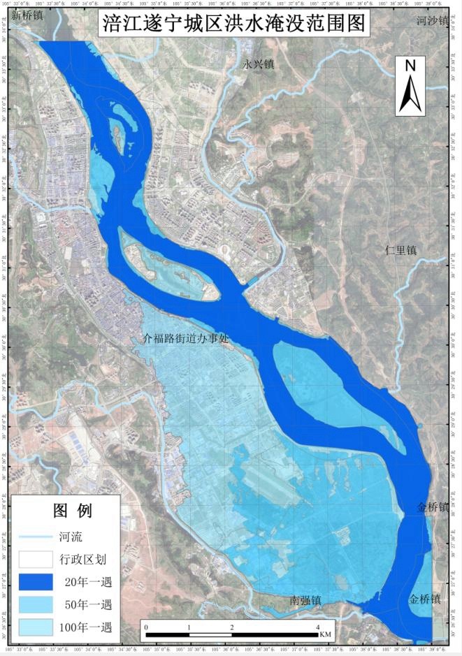 据了解,“洪水淹没范围图”是遂宁水文中心针对该市防汛工作特点专门绘制的洪水预警信息图,通过整合河道管理范围3D数据,实现了涪江、琼江两条河流的淹没范围数字化,将预见期延长了10-20个小时。这也是全省水文系统内的首张“洪水淹没范围图”。