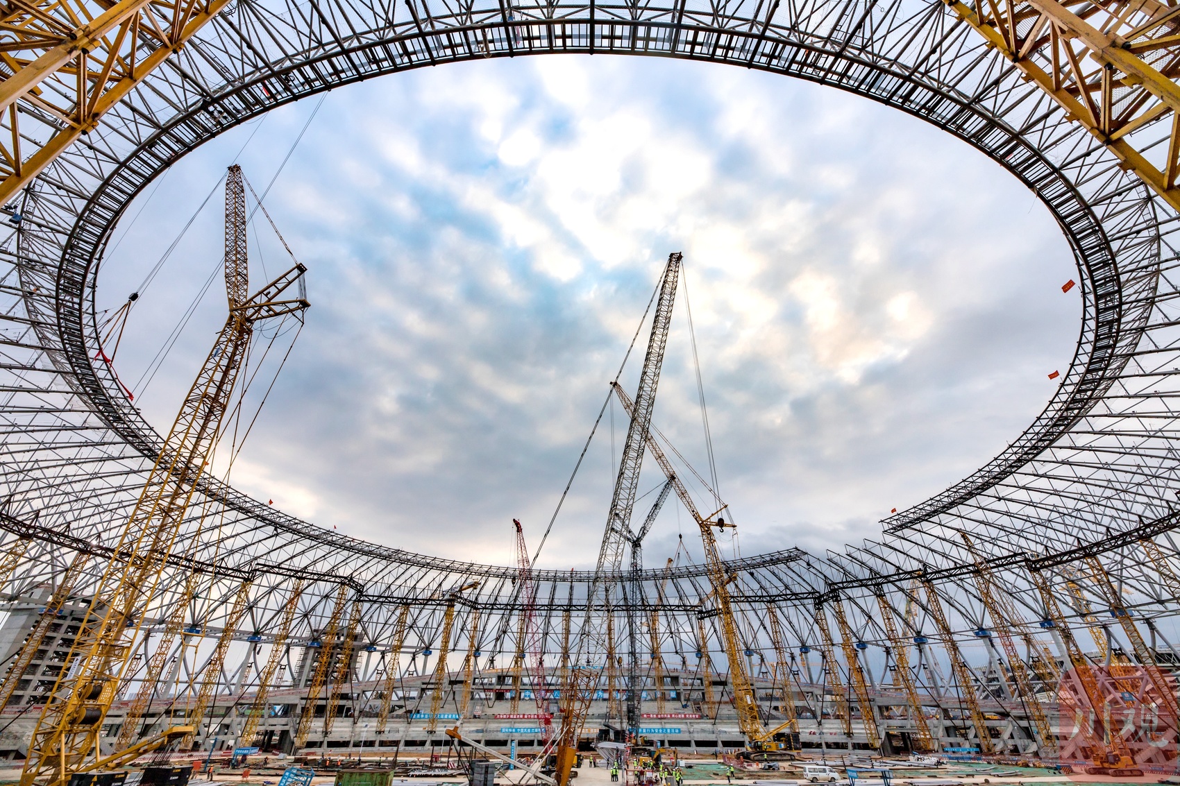 大运会体育场钢结构主体施工过程中照片。王培培 摄