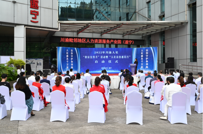 4月29日,2022年川渝人社“普法宣传月”活动在四川省遂宁市和重庆市巴南区同步启动。