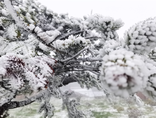 现场工作人员介绍,降雪从4月29日晚开始,一夜间,峨眉山银装素裹,宛若回到了冰雪童话世界。娇艳盛开的杜鹃花,此时也换上了一件晶莹剔透的冰衣,迎着风雪舞动。