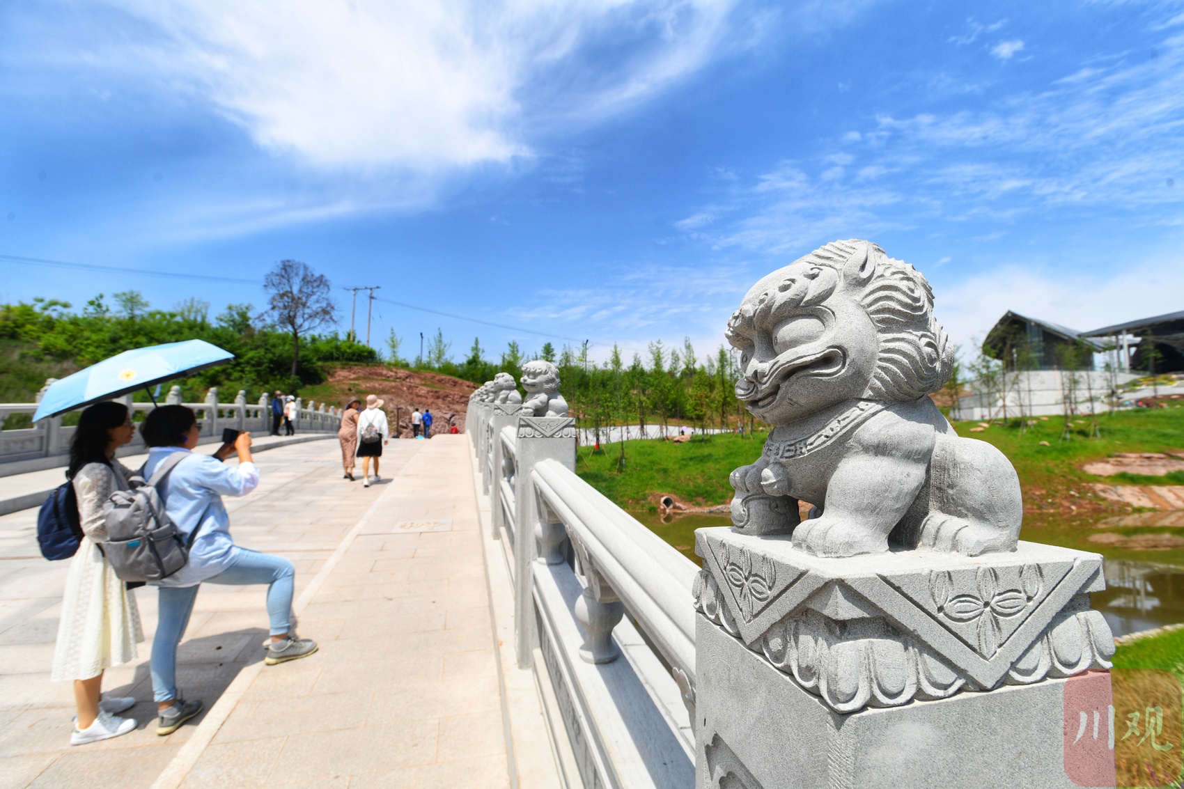 5月2日,艳阳高照,假期中的成都市民纷纷外出踏青。毗邻成都天府国际机场的“三鱼萌狮文化村”景点因观看飞机起降视野绝佳,吸引了不少市民前往。
