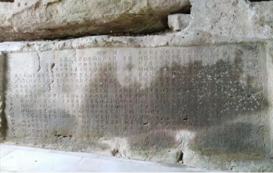 离开醒园,我们继续追寻李调元在罗江的成长足迹。在调元镇百花村云龙山脚下,有一方凿于清咸丰十年(公元1860年)的长方形摩崖石刻,长2.1米,宽0.9米。碑文共有599字,最右一排字稍大,文为“李氏宗祠敦本堂存赜”。