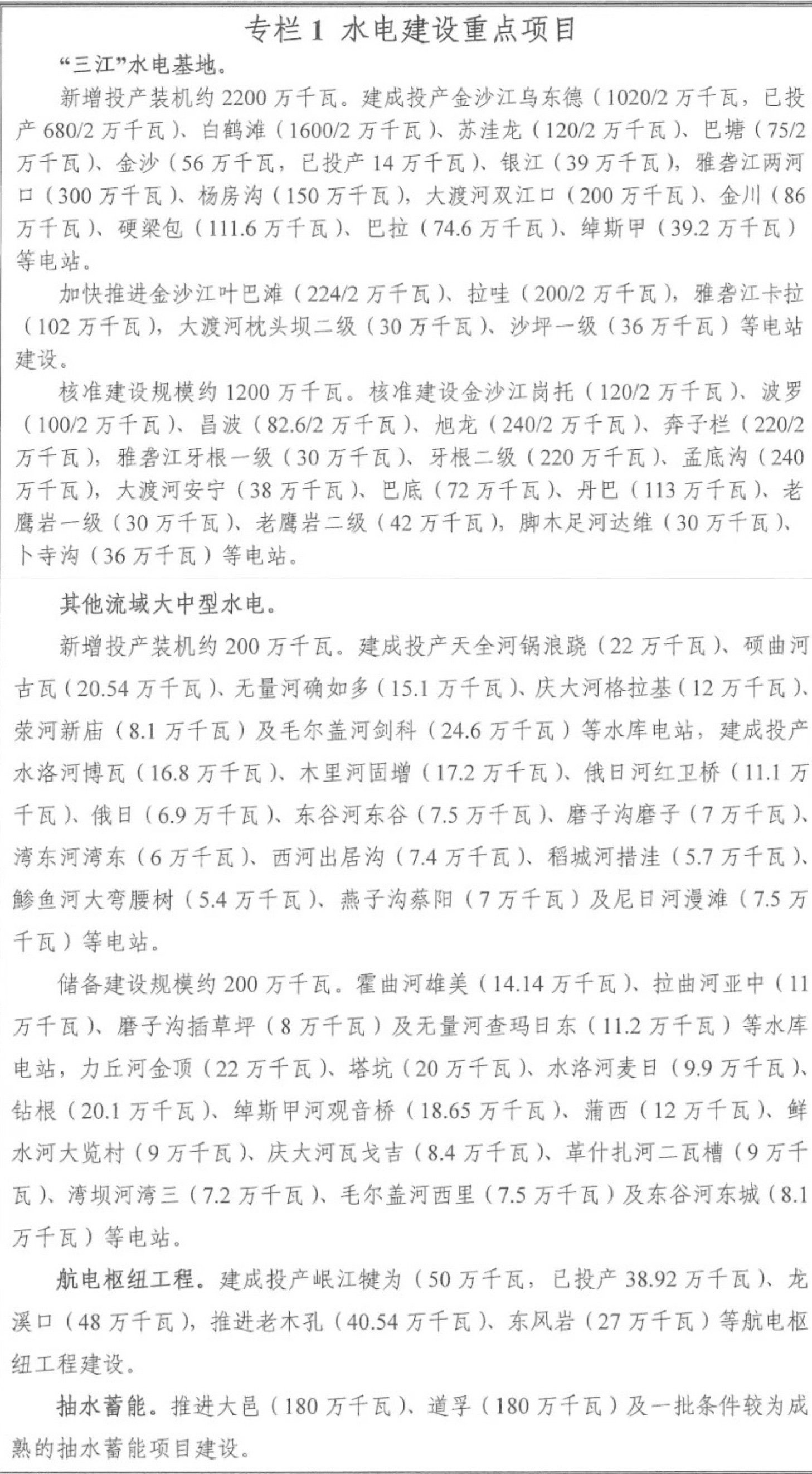 有序建设抽水蓄能电站。对安宁河流域开展站址普查,对利用上下游梯级水电站建设的混合式抽水蓄能电站,开展选点研究。