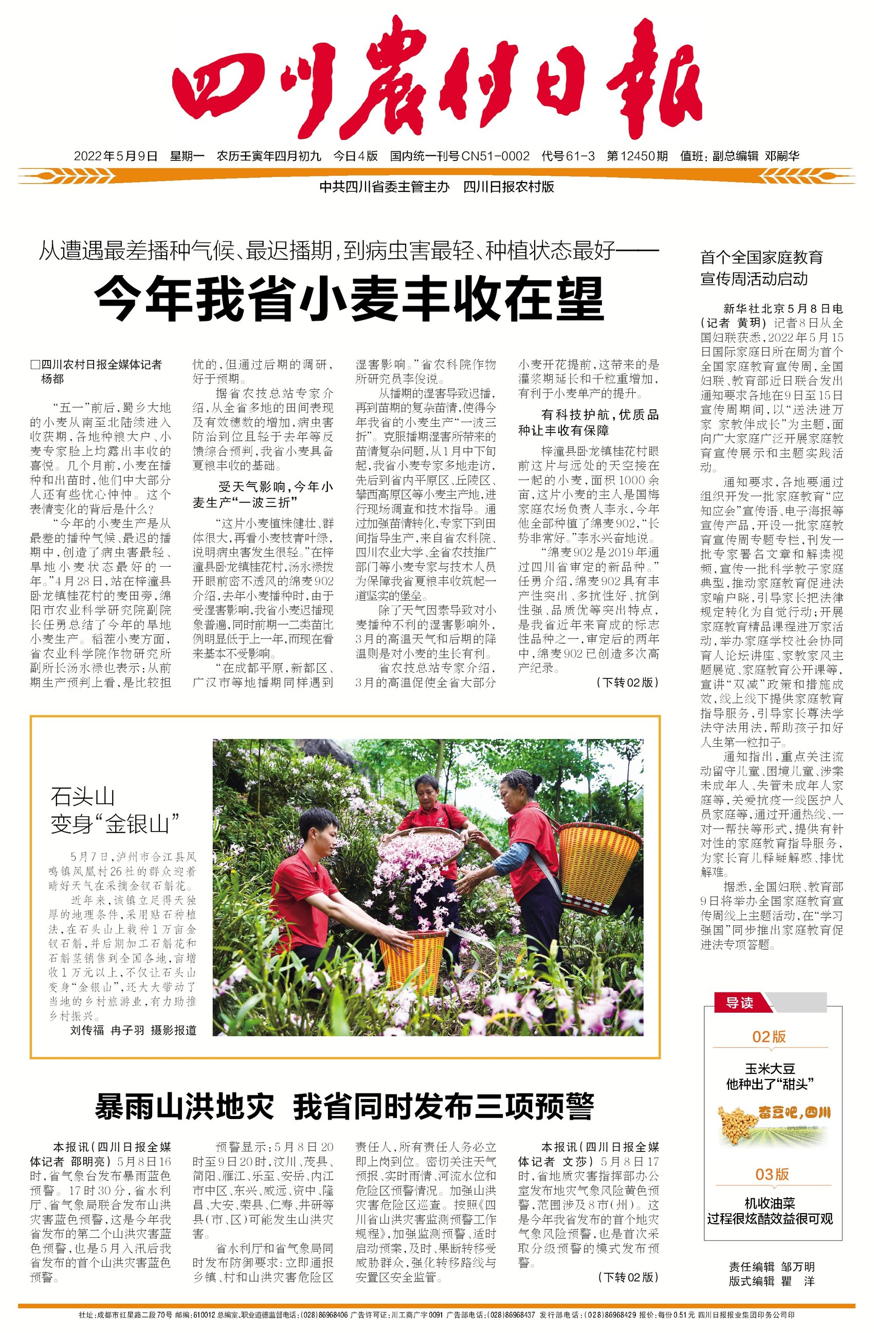 在成都市新都区,名为“川麦1247”的小麦即将收获。作为全省为数不多的抗赤霉病品种,还兼具产量高、早熟等特性。
