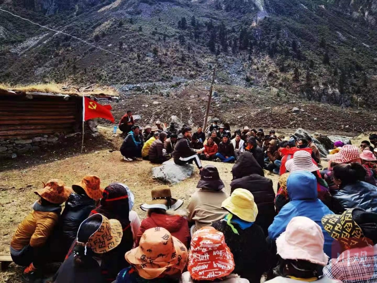 五月的康定,蓝天、白雪、绿林。细眺远山,不难发现,在山坡草甸间有一些黑点和红点在缓缓移动,这是康定市沙德镇虫草山“流动网格”服务队丹旦山小组伴随群众采挖虫草的身影。他们戴着“红袖套”,将帐篷搭在采挖虫草群众的帐篷边,整个虫草季与他们同吃同住同行,为群众过完虫草季保驾护航。