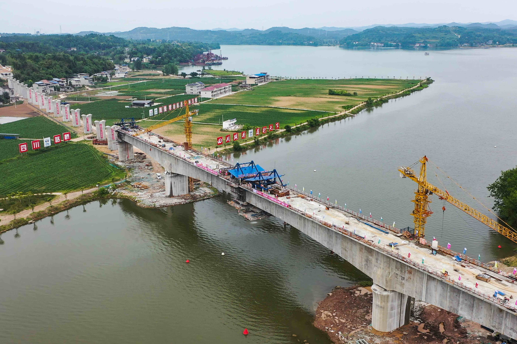 西河特大桥横跨蓬安、南部两县,此次合龙的主跨为连续梁架构,长281.6米,分为73个节段,采取挂篮悬浇施工法建设。大桥建设克服了梁体对接精度高、水上交通安全压力大等困难,确保了连续梁按期安全顺利合龙。