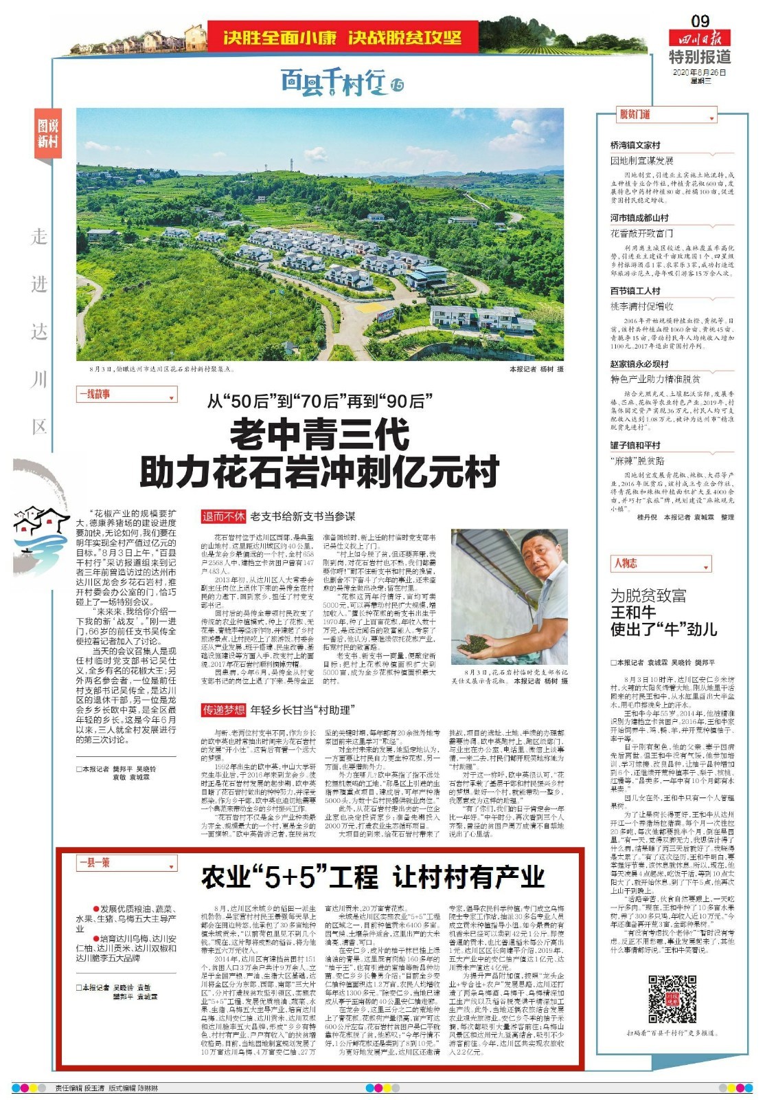 2014年,达川区有建档贫困村151个,贫困人口3万余户共计9万余人。立足于全国产粮、产油、生猪大区基础,达川将全区分为东部、西部、南部“三大片区”,分片打造脱贫攻坚引领区,实施农业“5+5”工程,发展优质粮油、蔬菜、水果、生猪、乌梅五大主导产业,培育达川乌梅、达川安仁柚、达川贡米、达川双椒和达川脆李五大品牌,形成“乡乡有特色、村村有产业、户户有收入”的扶贫增收格局。目前,当地因地制宜规划发展了10万亩达川乌梅、4万亩安仁柚、27万亩达川贡米、20万亩青花椒。