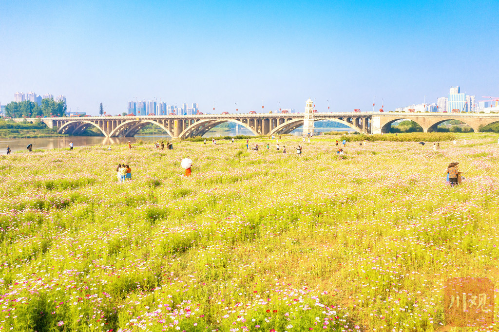 5月10日,记者来到沱江边的雁江古渡看到,美丽的格桑花正次第开放,紫色、粉色、雪白的格桑花连成一片,随风涌动让人沉醉其中,一股清清淡淡的花香弥漫在花田里,吸引着游客们拍照打卡。