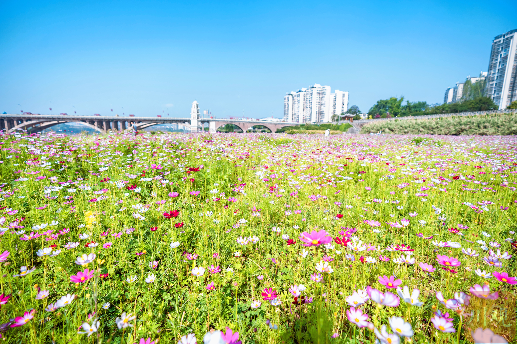 五月,春未尽,夏初临,正是百花竞放的时候。原本生长在高原上的格桑花,如今在资阳人的家门口尽情盛放。
