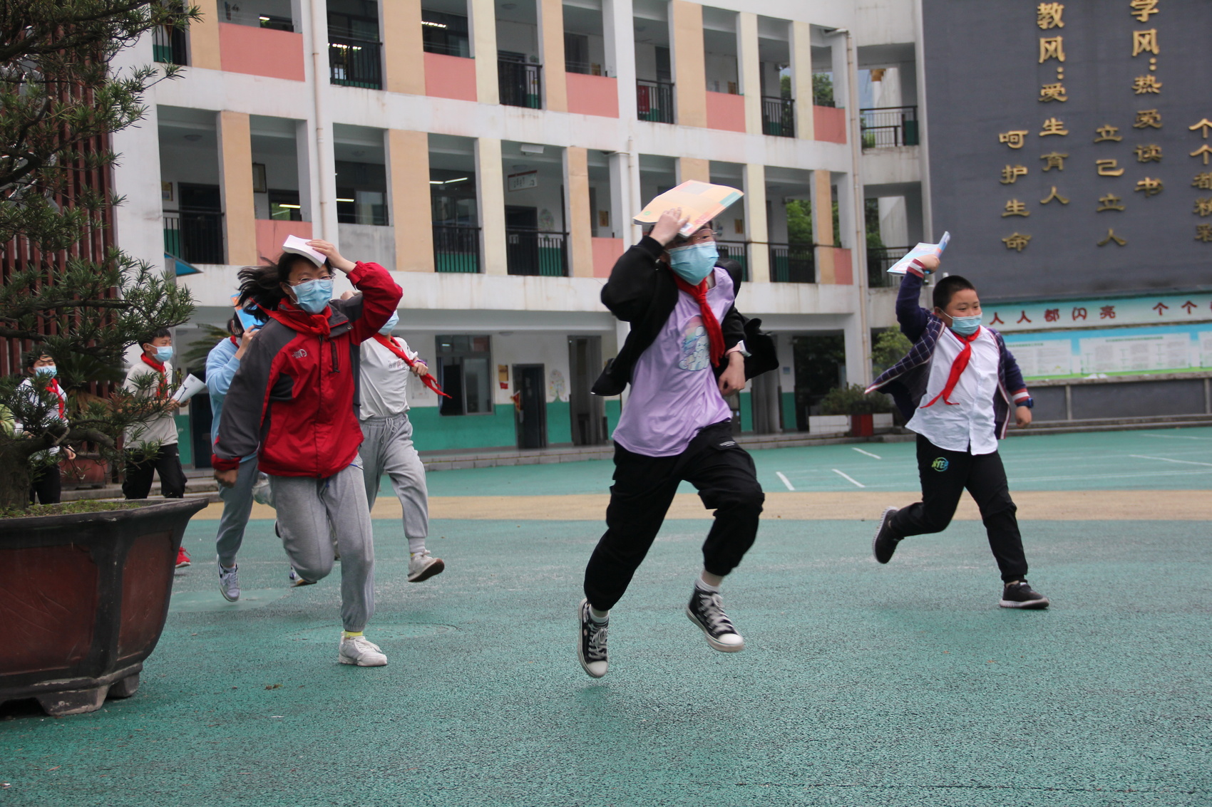 警报拉响后,学校立即启动防灾减灾应急预案,各班级老师第一时间组织学生就近避险,疏散撤离。师生拿着书本护着头部,按既定的疏散路线,快速有序撤离,不到一分钟左右的时间,全校400余名师生全部安全撤离到学校操场。