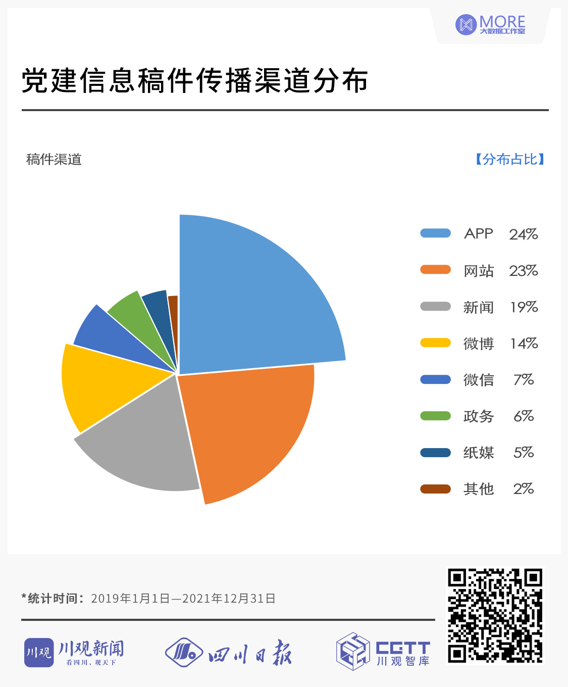 数据显示,全网范围内,由“四川机关党建”网站推送的各地各部门党建工作创新做法和成效相关信息稿件及文章核心内容被转载、被引用共67172次,其中新闻类APP、网页端、新闻网站为主要传播渠道。