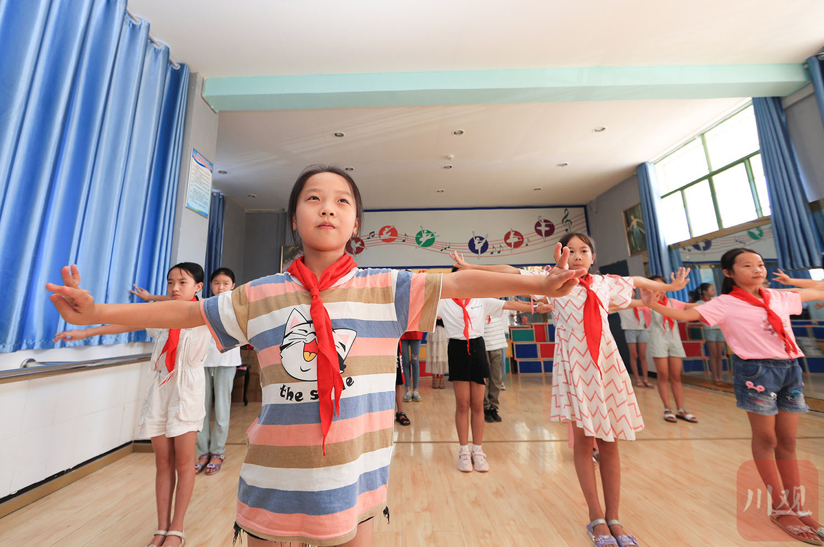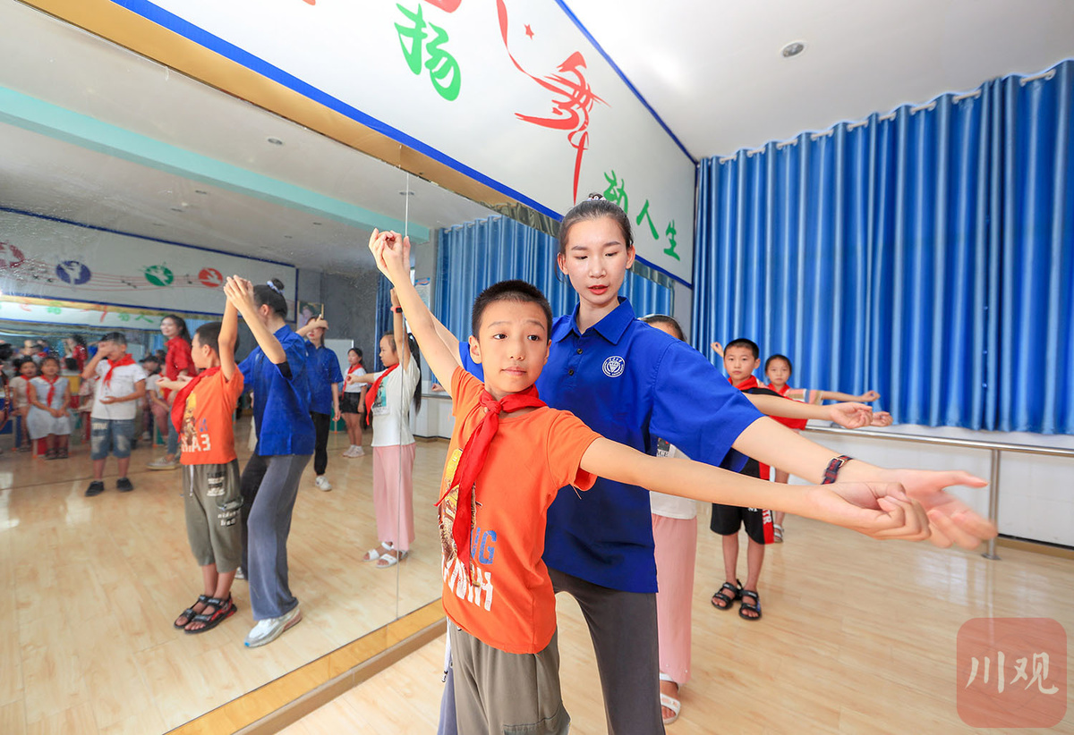 8月26日,来自重庆大学艺术学院舞蹈表演专业的3名大学生志愿者,与华蓥市杜家坪小学的22名学生共同表演舞蹈《下山》,在欢快的音乐中结束了暑期志愿服务活动,这也是华蓥市暑期“文化课堂”的最后一堂课程。课程结束后,大学生志愿者和孩子们都将陆续返回校园,迎来新的学习生活。