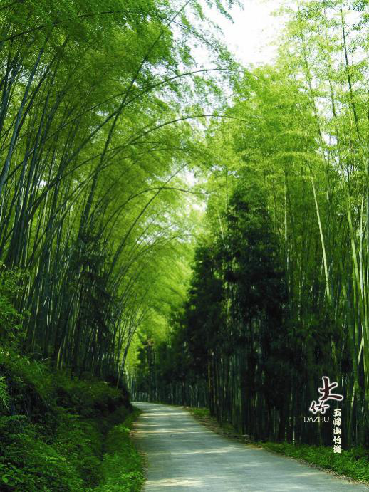 说到大竹县的竹子,当以五峰山为有名。这里享有朝阳、月华、蒲包、石桥铺四个乡镇的竹林资源,将竹海核心景区、蒲包山景区和海明湖湖景区三块区域组团形成一座竹海公园,是国家森林公园、国家4A级旅游景区。