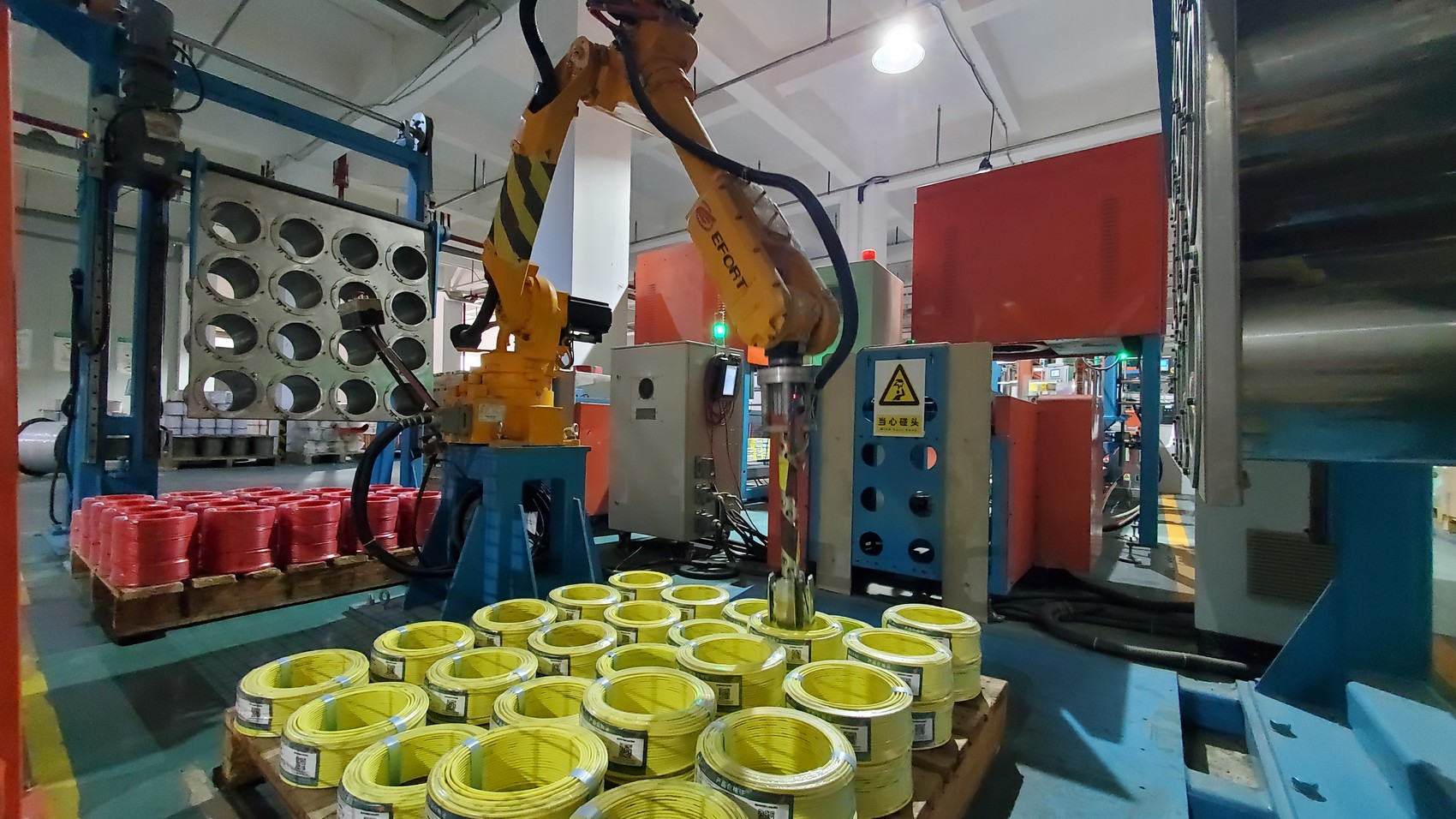 第一阶段,先投入400万元,对智能化布电线车间进行升级改造。在机器轰鸣的厂房里,记者看到,智能车间的两条生产线可以自动完成挤塑、成圈、包装、码垛的全流程,并且,通过打通底层数据,实现了车间各工序的智能化派单。