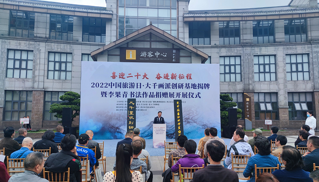 5月19日,正值中国旅游日,在内江张大千美术馆,2022中国旅游日·大千画派创研基地揭牌暨李果青书法作品捐赠展开展仪式正式举行。