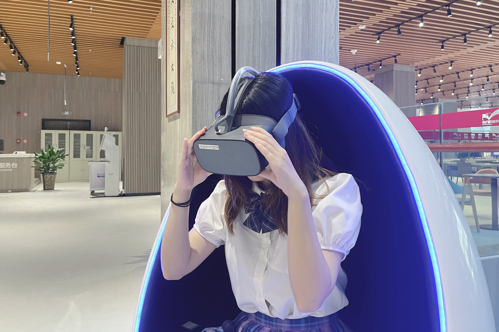 戴上VR眼镜,坐上自助阅读蛋椅,一场“奇妙阅读之旅”在读者王馨悦眼前徐徐开展。在字与句中翻山越岭,俯下身来,看草与花的细节,穿行在虚拟画面,她仿若跳出图书馆,来到广袤的自然,开启体味自然科学的曼妙。南充市图书馆办公室主任邓诗询介绍,在少儿VR/AR体验区,这些VR/AR设备植入了VR虚拟现实教学系统,读者可在这里身临其境体验传统文化、红色文化、全景疆域等,从而与作者同频共振,极大地激发了人们沉浸阅读的兴趣。