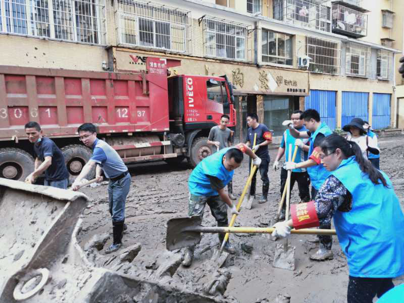 今天我们分配的是通江路和润联·美家居商城两个紧挨在一起的区域,这是一片由商住两用建筑群构成的小区,面积非常大,到处都是厚厚的淤泥,一楼的商户正不停地往外清理杂物,指挥部的命令是不清理完毕不准收工,大家有些绝望,没人相信我们今天能够完成这个任务。