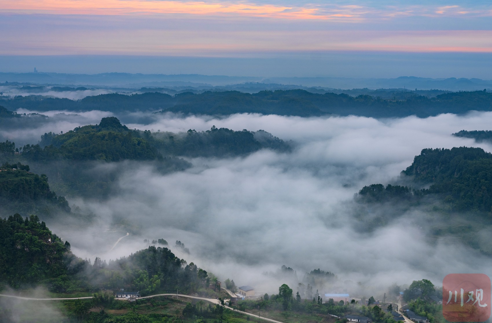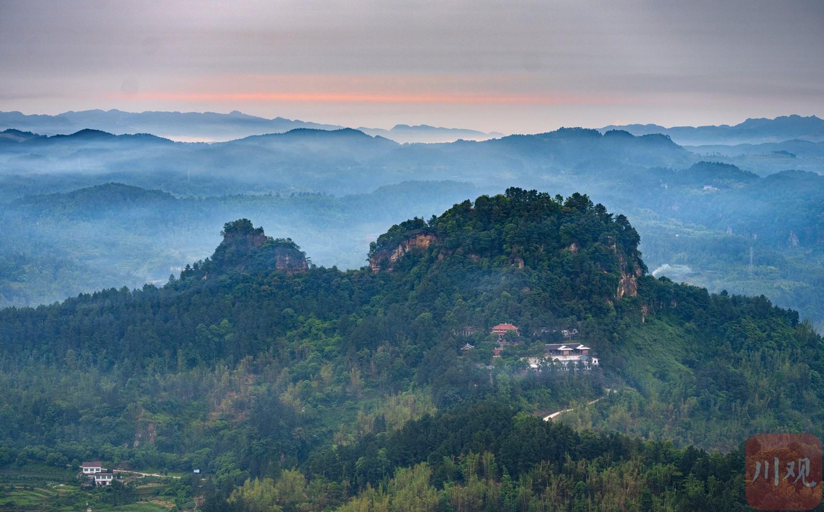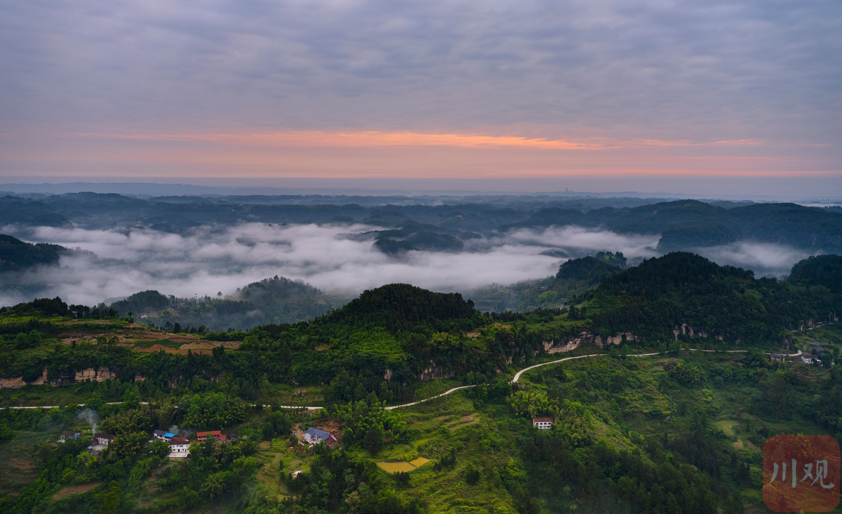 5月,威远县骑龙坳迎来最佳云海观赏期。“川观号”直升机伴着日出起航,记录壮美云海。初夏雨后,骑龙坳雾气环绕,云海翻腾,犹如水墨丹青。