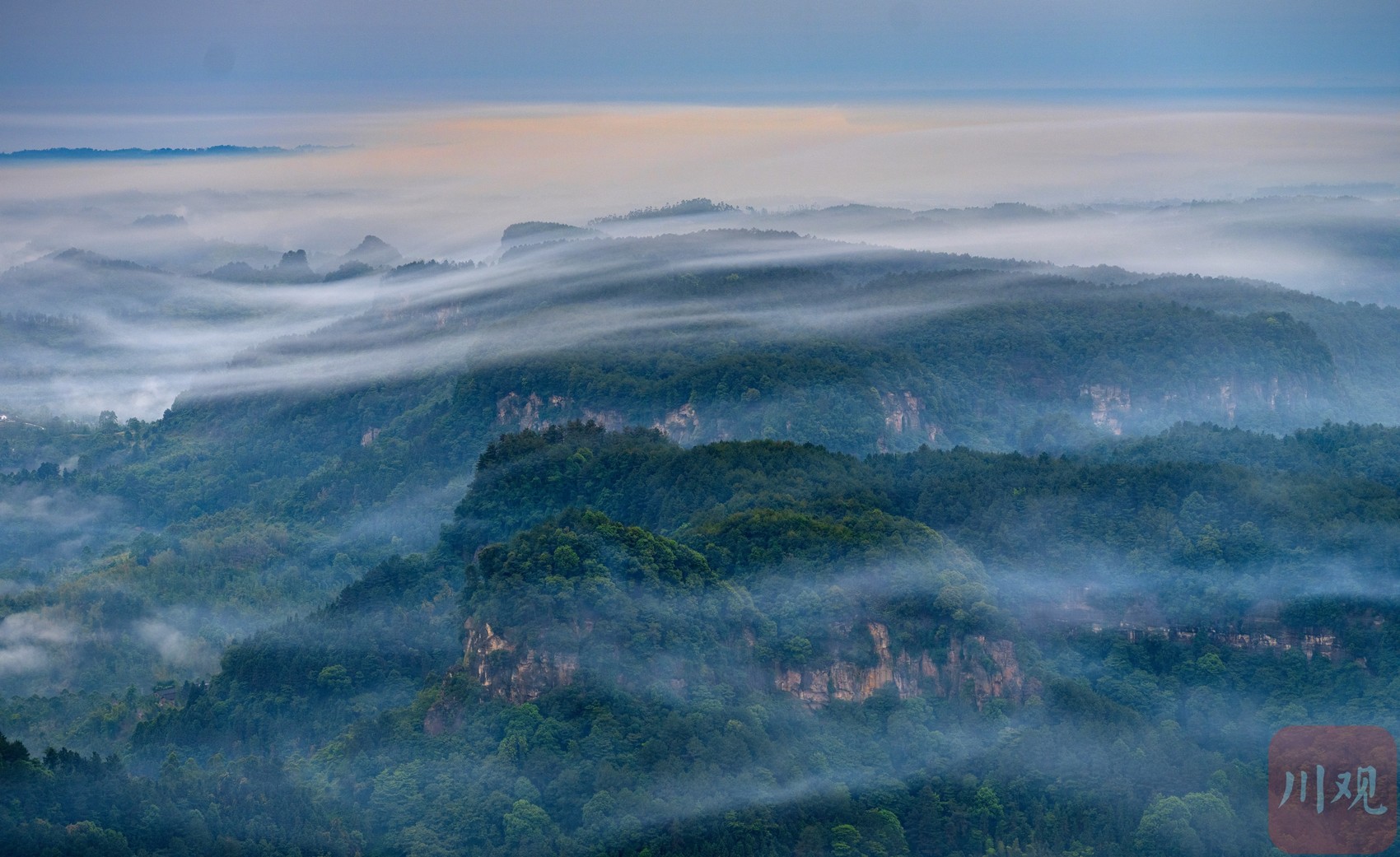 5月16日清晨,威远穹窿地貌上出现流云景观