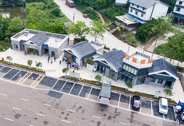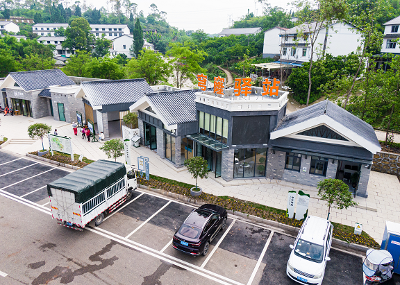 5月20日,内江威远成自泸高速威远南收费站路口处,旅游驿站“穹窿驿站”迎来不少游客,这一驿站以传统的青瓦作为屋面装饰材料,创新的中式建筑风格格外亮眼,成为进入威远后首张文旅名片。