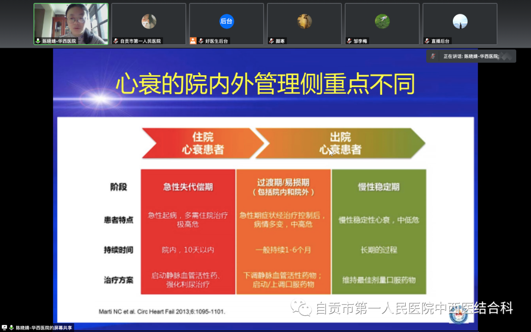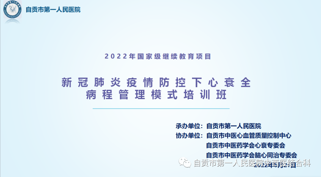 为进一步探讨临床心血管学科如何更好的在“后疫情”时代发挥专业作用、优化心衰患者的防治和管理方案,提升诊疗技术新模式,为优化学科建设提供思考和借鉴。5月21日,自贡市第一人民医院中西医结合心病科以线上方式,成功举办国家级继续医学教育项目《新冠肺炎疫情防控下心衰全病程管理模式培训班》,此次线上参与培训约10000余人。