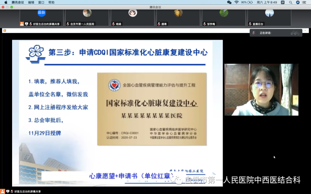 自贡市第一人民医院主任医师,四川省中医药管理局学术和技术带头人后备人选,四川省中医药传承创新发展先进个人李刘英教授讲述“中西医结合心脏康复规范化管理”,提出心脏康复中西医结合管理新理念。