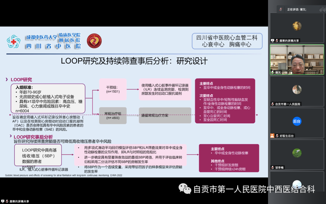 成都中医药大学附属医院心血管二科主任、四川省名中医、四川省中医药管理局学术和技术带头人谢文教授分享“从EHRA2022热点研究看房颤全程管理最新进展”,通过此项研究为进一步指导和规范房颤的全流程管理再添新证,使大家受益良多。