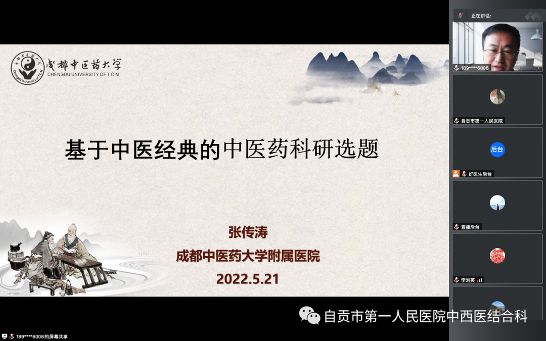 成都中医药大学附属医院医学博士,全国优秀中医临床人才,教育部长江学者,全国抗击新冠肺炎疫情先进个人张传涛教授为大家分享“基于中医经典理论的中医药选题技巧”,提出未来中医经典是科研选题趋势,并讲述科研选题技巧与思路,使大家受益良多。