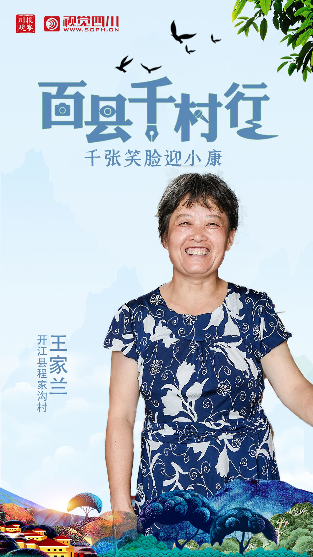 开江县程家沟村村民王家兰脱贫奔康后露出灿烂的笑容。
