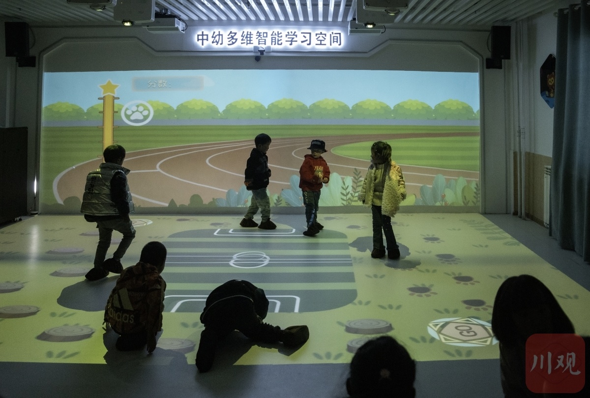 “在这里书本上的很多知识都变活了,在空间里动了起来。我很喜欢未来教室,希望天天在这里上课学习。”柏玛娜姆说。柏玛娜姆是金珠镇幼儿园大达玛班的学生,在她看来未来教室就是神奇百变空间。2021年10月,5G科技校园VR全景公益项目在金珠镇幼儿园投用。作为泸州市援建甘孜州稻城县的首个幼儿教育信息化项目,5G科技校园VR全景公益项目开创了甘孜州幼儿学龄段科技进校园VR全景教学的先河。科技互动性课程的植入与教育信息化大数据的集成,通过动画引导、交互特效、数据反馈的可视化教学方式,对提升稻城县教学质量高质量发展有着重要的意义。