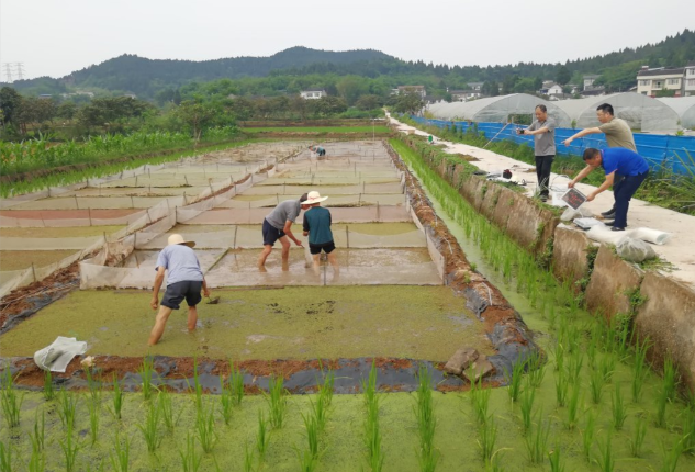 国家绿肥产业技术体系南充综合试验站站长韩文斌说:“红萍是依靠孢子果无性繁殖,孢子果就相当于植物的种子。只需在第一年往每亩稻田投放200公斤左右的种萍,即可生长扩展铺满整个水面,红萍可依靠每年掉落在水里和泥里的孢子果于每年底开始新一轮萌发、繁殖。稻田里施用一定的有机肥,还可促进红萍快速生长,1 亩稻田至少可长出两三千公斤的红萍。为了促进红萍的生长,可将水稻施肥量的20%前移到红萍生长阶段使用。根据红萍的长势及产量,水稻可减少 20%-30%的化肥使用量。”