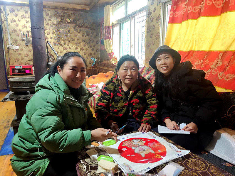刘小义(右一)到修卡村采访妇女居家就业。 受访者供图