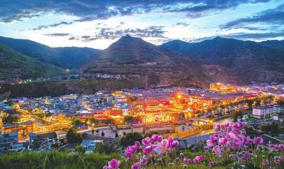 夜幕降临,松州古城华灯初上。松潘县委供图
