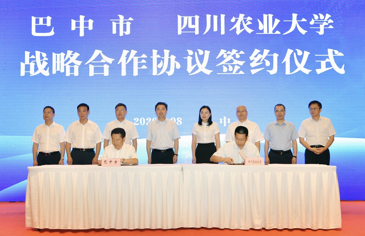 8月27日下午,巴中市人民政府与四川农业大学签订《战略合作协议》。双方将充分发挥各自在资源整合、科技创新等方面的优势,探索建立全面持续稳定的合作模式和合作机制,开展农业科技合作、联合培养科技人才、加强农业科技信息交流、加强项目合作。