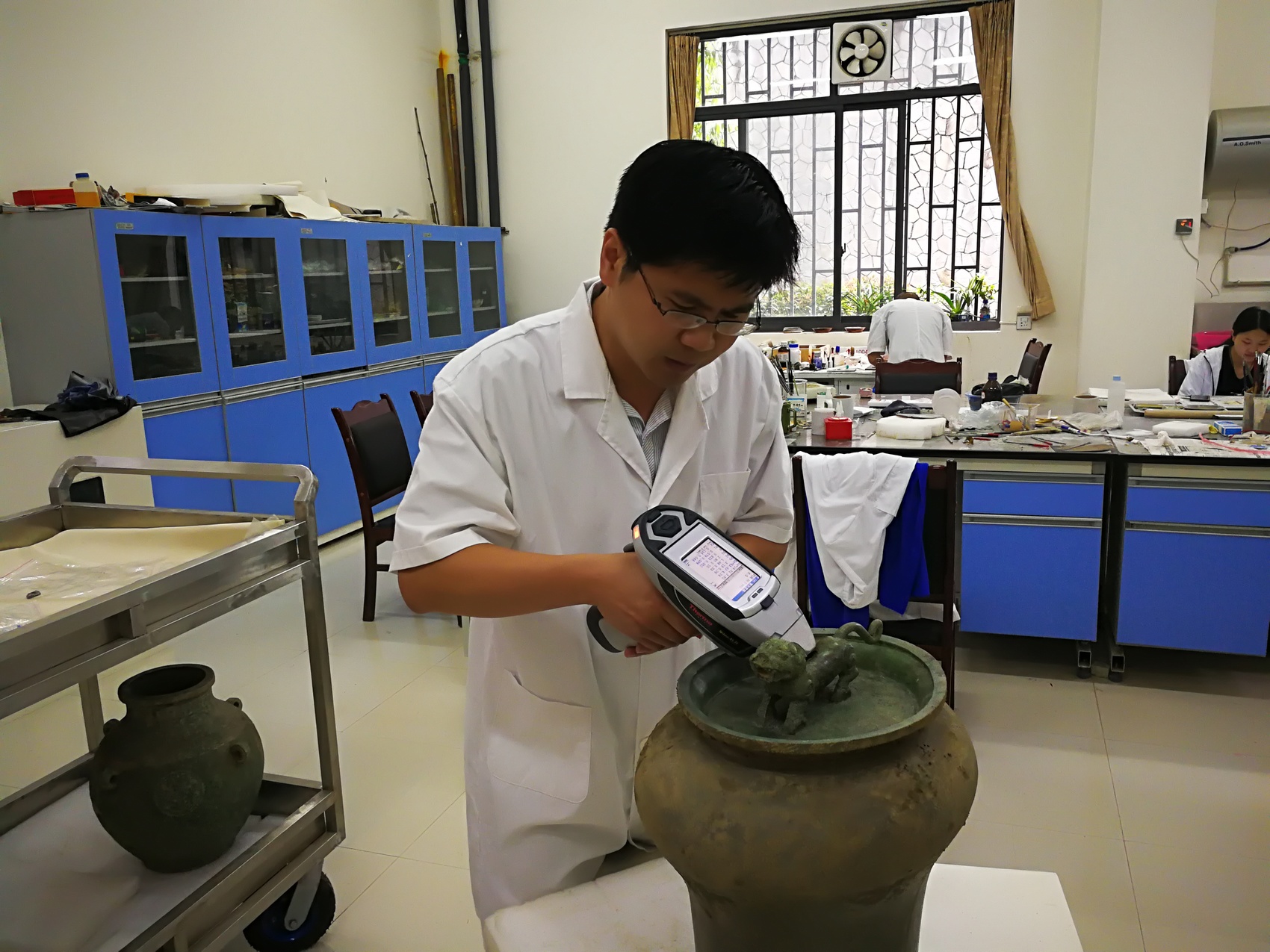 价值2000多万元的设备中,包括扫描电镜能谱、拉曼光谱仪、X光衍射仪等,可为文物保护修复提供更多科学依据。“例如,我们可以很快判断出一处铜锈是需要清除的有害锈,还是对青铜器起到了保护作用、应该保留的锈。”