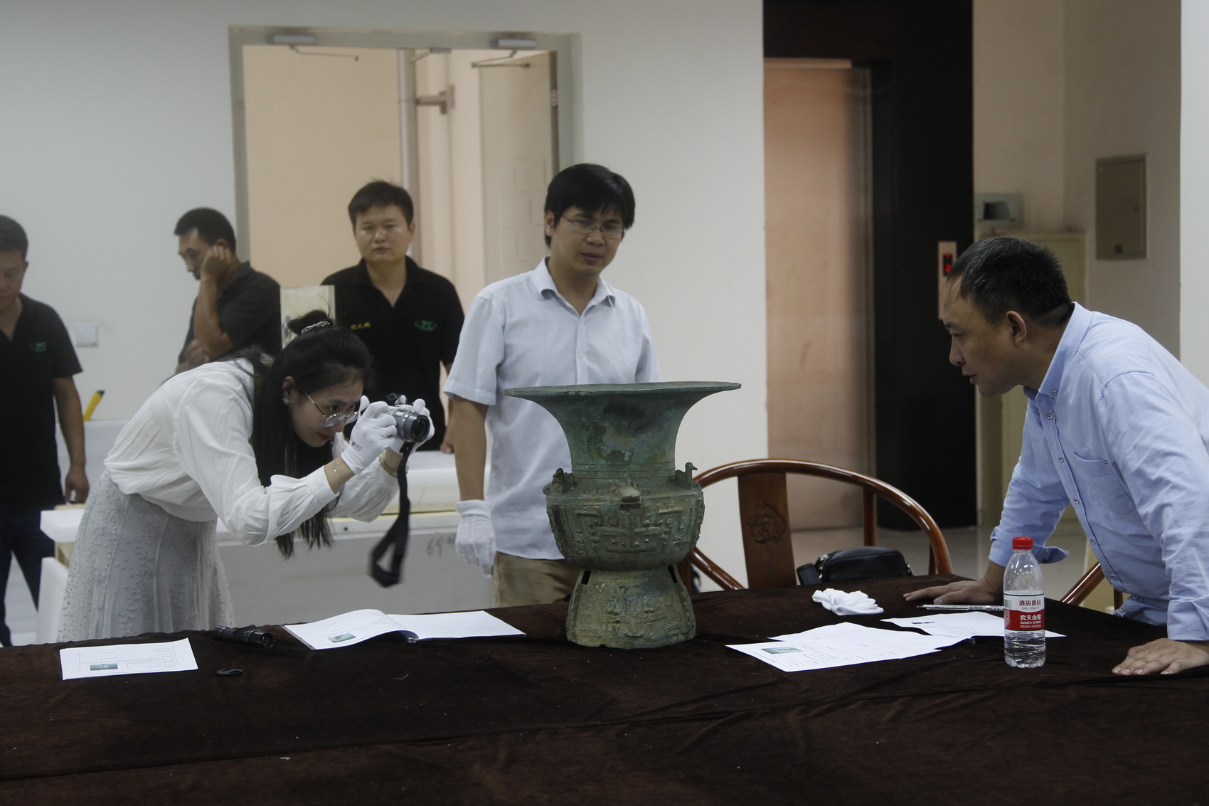 5月20日上午,四川广汉三星堆博物馆文物保护与修复馆内,工作人员取出一件表面附着泥土的青铜器残件,小心翼翼地拍照存档。“这是三星堆遗址新出土的眼形器。”三星堆博物馆陈列保管部部长余健介绍,在正式开展出土文物修复工作前,要对其图像、尺寸、重量等信息进行采集完善,以便修复后与之对比。