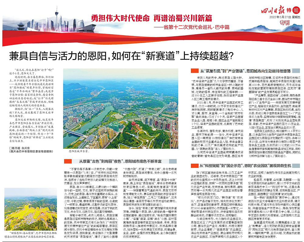 恩阳文旅市场的火爆,仅是近年来巴中市恩阳区奋力实施“开放引领、产业强区、营城聚人、乡村振兴”发展战略,全面推进“两地三区”现代化新恩阳建设的一个缩影。作为一个“年轻”的城市,恩阳在“新赛道”上正绽放自信与活力。