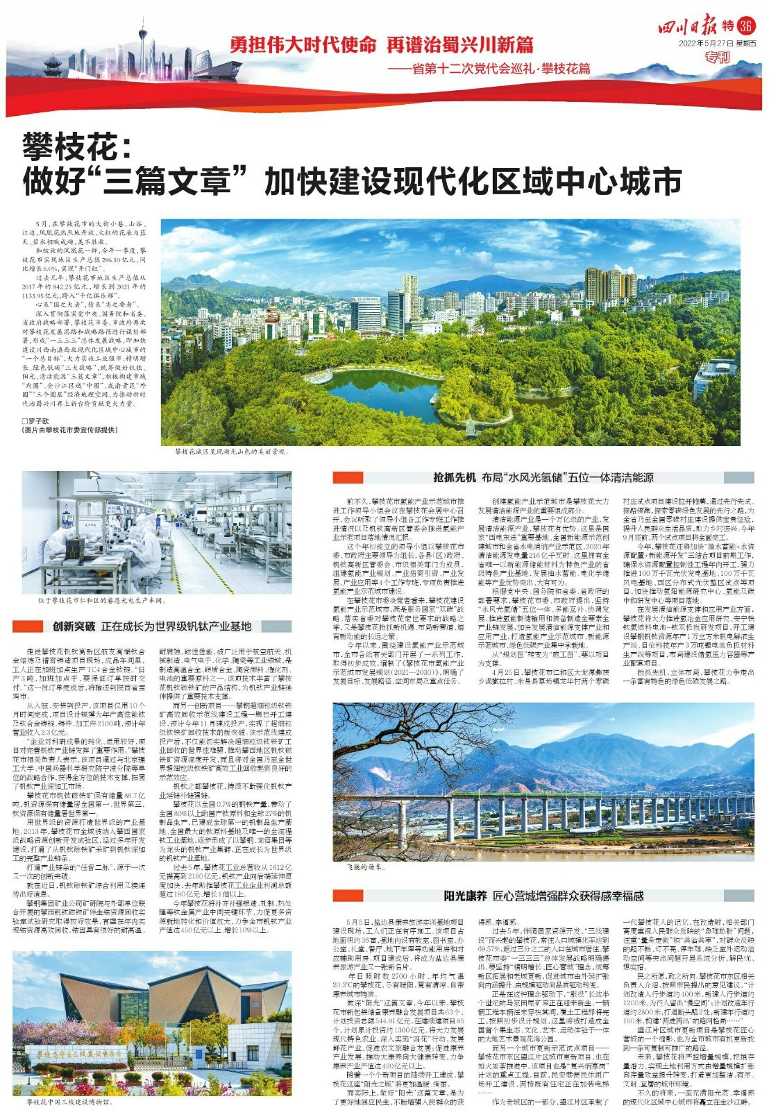 用世界级的资源打造世界级的产业基地。2013年,攀枝花市全域被纳入攀西国家级战略资源创新开发试验区,经过多年开发建设,打通了从钒钛磁铁矿采矿到钒钛深加工的完整产业链条。