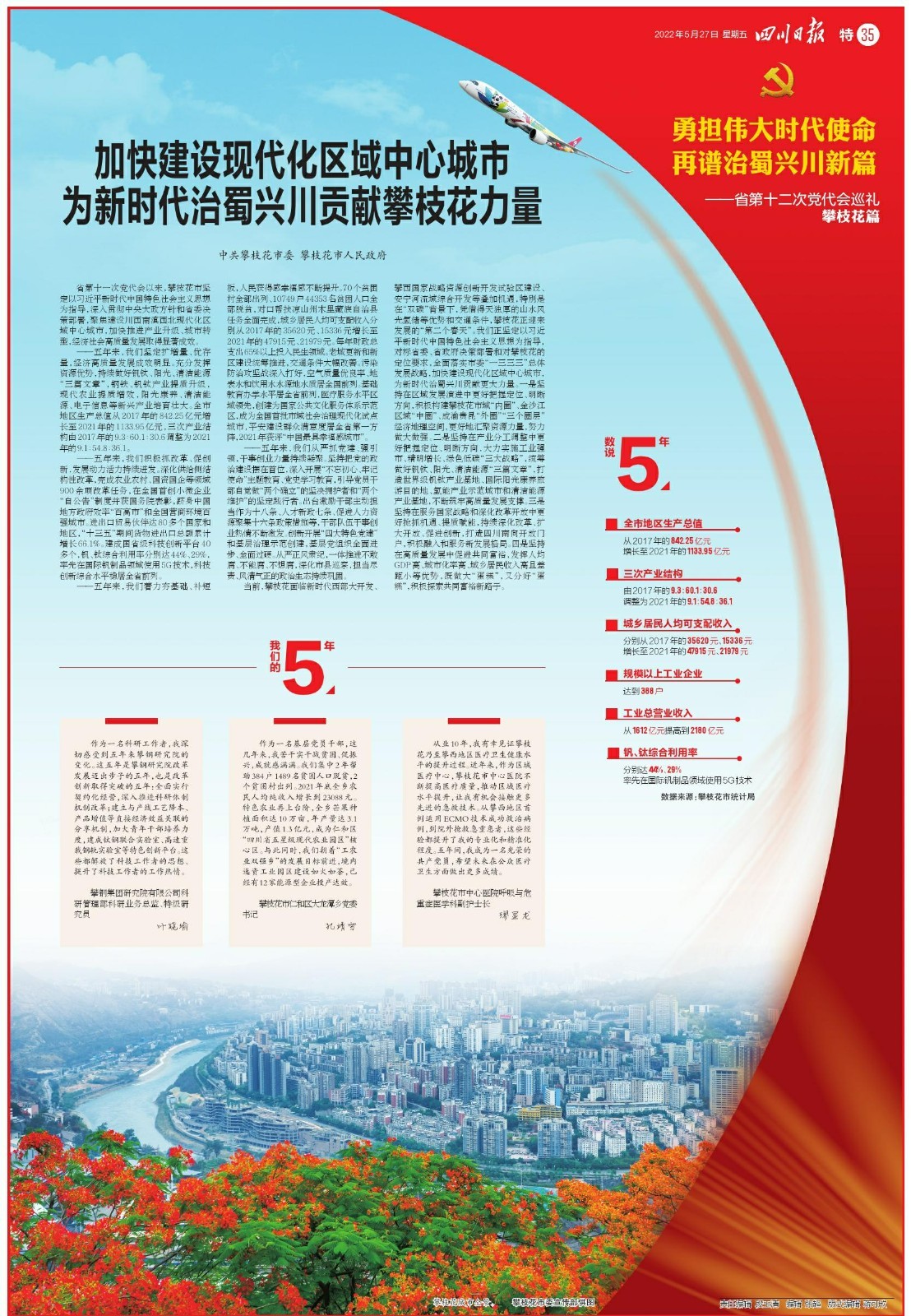 5月27日,《四川日报》推出148个版特刊,其中,用5个整版全面展现了攀枝花市经济社会民生持续发展。一起来阅读吧!