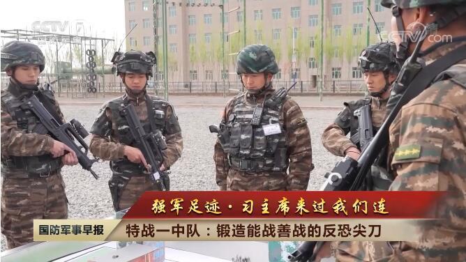 央视网消息:武警新疆总队某机动支队特战一中队驻守在新疆,组建29年来,中队官兵先后执行30多次反恐处突任务,铸就了“忠诚、勇敢、团结、善战”的特战队魂。2014年4月27日,习主席来到特战一中队视察,勉励官兵们要牢记职责、再接再厉,坚决完成以执勤处突为中心的各项任务,为祖国和人民建功立业。8年来,中队官兵始终牢记主席嘱托,苦练过硬本领,守护着边疆人民的幸福生活。