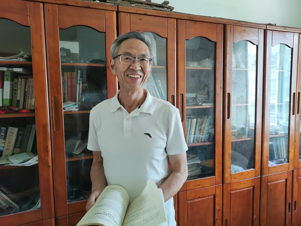 眼前这位头发斑白的老人,身上不过一件汗衫、一条短裤、一双凉鞋,家中的书却堆成了山,身体和精神状况看起来跟二三十岁的小伙子差不多,每天行走两三万步。