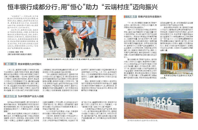 为乡村旅游产业发展注入动能,只是恒丰银行成都分行帮扶牛背山村的一个缩影。