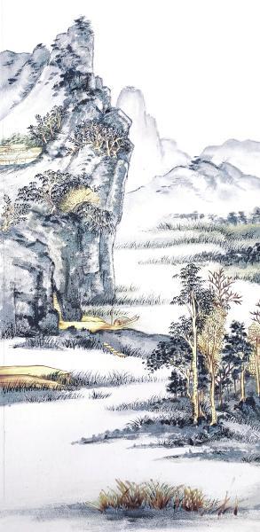 柏波绘制的《水乡风光》碳末麦秆画,以麦秆灰为墨。
