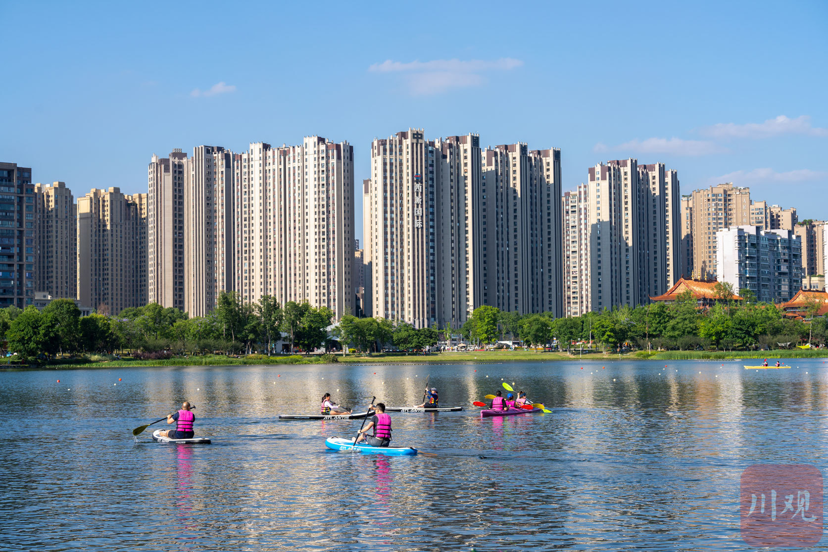 锦城湖,就像一颗蓝绿色的宝石,镶嵌在成都这座公园城市之中。除了平日里的休闲游玩,这里还是成都市民开展各类体育活动的地方,皮划艇就是其中之一。五月二十八日,这里就举行了一场成都市青少年皮划艇比赛。每一位选手都铆足干劲,荡起双桨,乘风破浪,将坚韧不拔,勇于拼搏的体育精神展现的淋漓尽致。