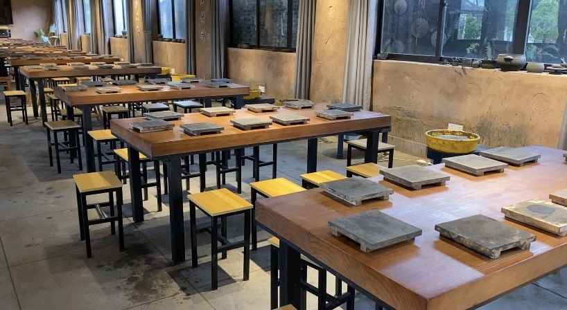 曾庆红的砂器厂,重新装修布局后变为一个开放式的荥经砂器活态馆,展示制作黑砂所需要的原料、工具以及整套制作流程。而厂里曾经烧制出许多黑砂作品的馒头窑,也成为艺术村中一个重点打卡项目。