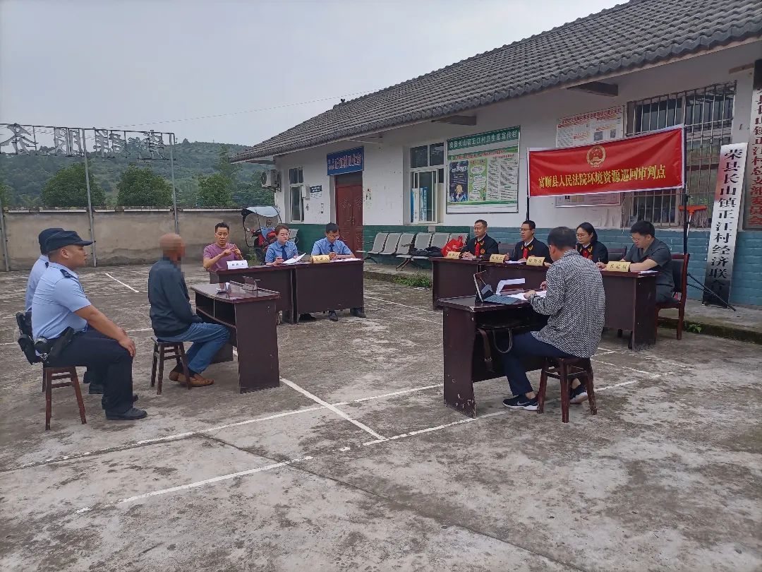 几张桌子、一条横幅,搭起了临时法庭,村委会办公楼前成了旁听席。5月30日上午,富顺县法院环资合议庭驱车100公里前往荣县长山镇正江村村委会,公开审理两起集中管辖的破坏环境资源刑事案件。
