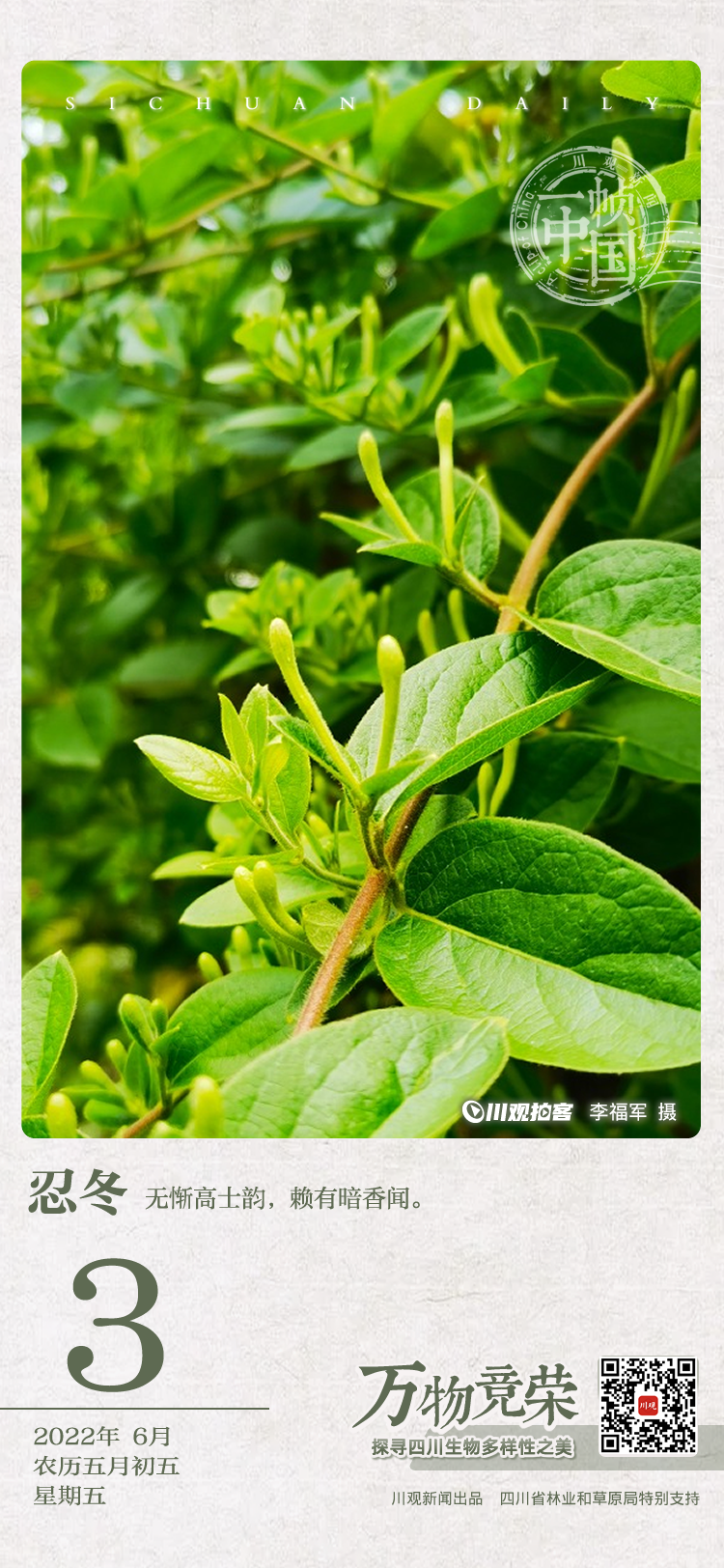 清代诗人王夫之曾在诗作《金钗股》中这样形容忍冬:“无惭高士韵,赖有暗香闻。”也许,诗人咏叹的不仅是忍冬纯净的幽香,还有这种越冬不凋的高洁吧。
