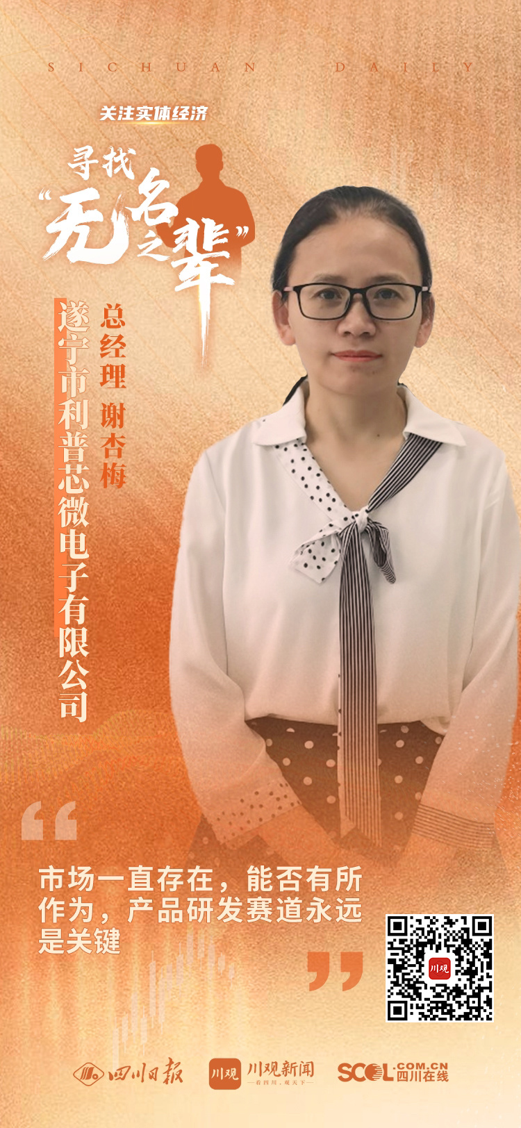 谢杏梅:产业链协同创新,我们在设计、封装上还是有一些技术优势的,未来需要进一步加强与同业公司的协作创新。目前,利普芯所在的遂宁经开区是四川电子信息产业链条最齐备的园区之一,我们正在政府的引导和协调下,与园区内上、下游企业合作,共同打造了一条联系紧密、运行顺畅的集成电路良性产业链,在实现园区“微循环”的同时,创造了良好的经济效益。